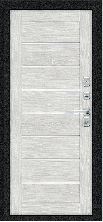 Дверь Браво Техно/BChrome Букле черное/Bianco Melinga - недорогая эконом класса по цене 3 863 руб., отлично подходит для временной установки в квартиру под сдачу, строительство, ремонт. Не смотря стоимость, модель хорошего качества.