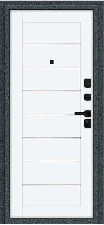 Надежная входная Дверь Браво Техно/SBlack Старк антрацит/White Silk премиум класса по цене 35 513 руб. Большая толщина стали защитит от проникновения в ваш дом, квартиру или коттедж. Используется очень качественная фурнитура: замки, цилиндры, ручки, защелки. Покрытие и отделка двери изготовлено под внимательным контролем производителя. Дверь имеет долгий срок службы и гарантию.