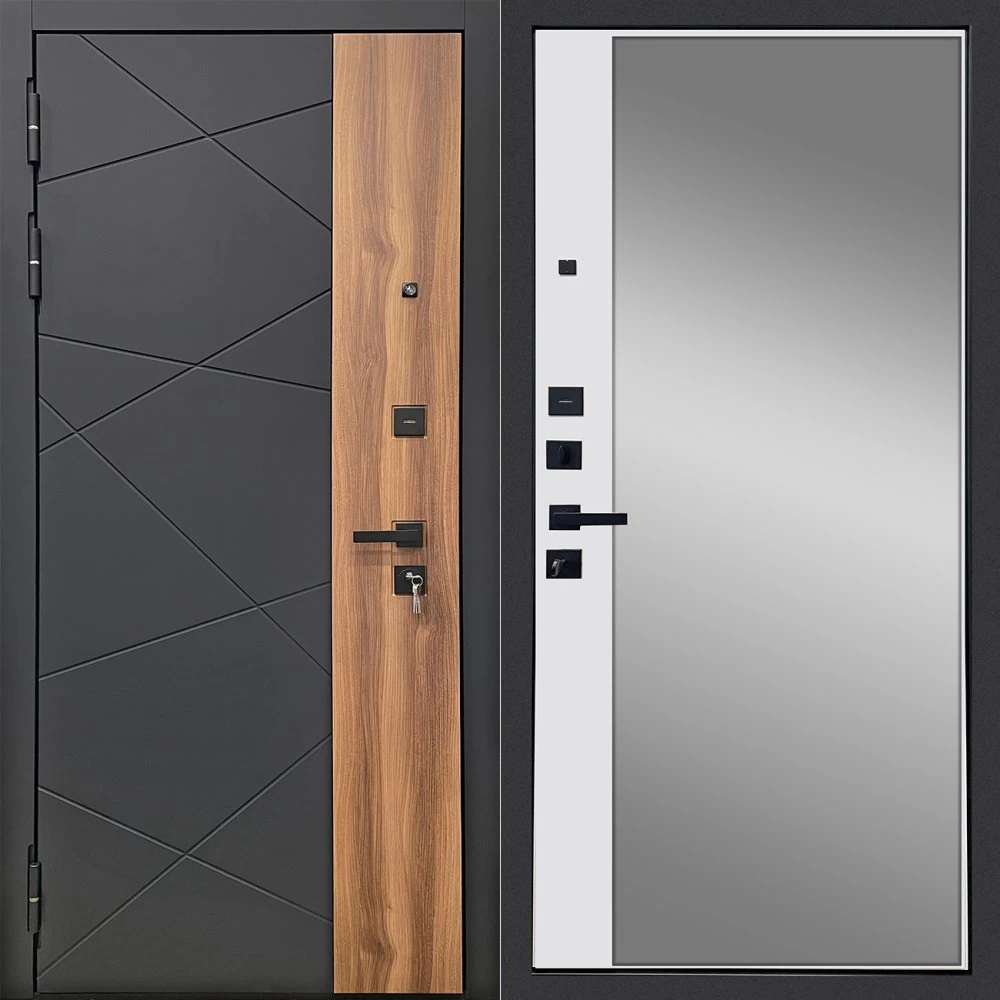 Дизайнерская входная Дверь Ратибор РАКУРС 3К ЗЕРКАЛО класса Люкс с несколькими листами стали, звукоизоляцией и теплоизоляцией. Утепленный короб и полотно защитят от сквозняков и шумов. Модель не только надежная, комфортная, защищенная и высочайшего качества, но и очень красивая! Будет отлично сочетаться с интерьером дома, квартиры или офиса. Сейчас действует выгодное предложение по цене: 54 913 руб.