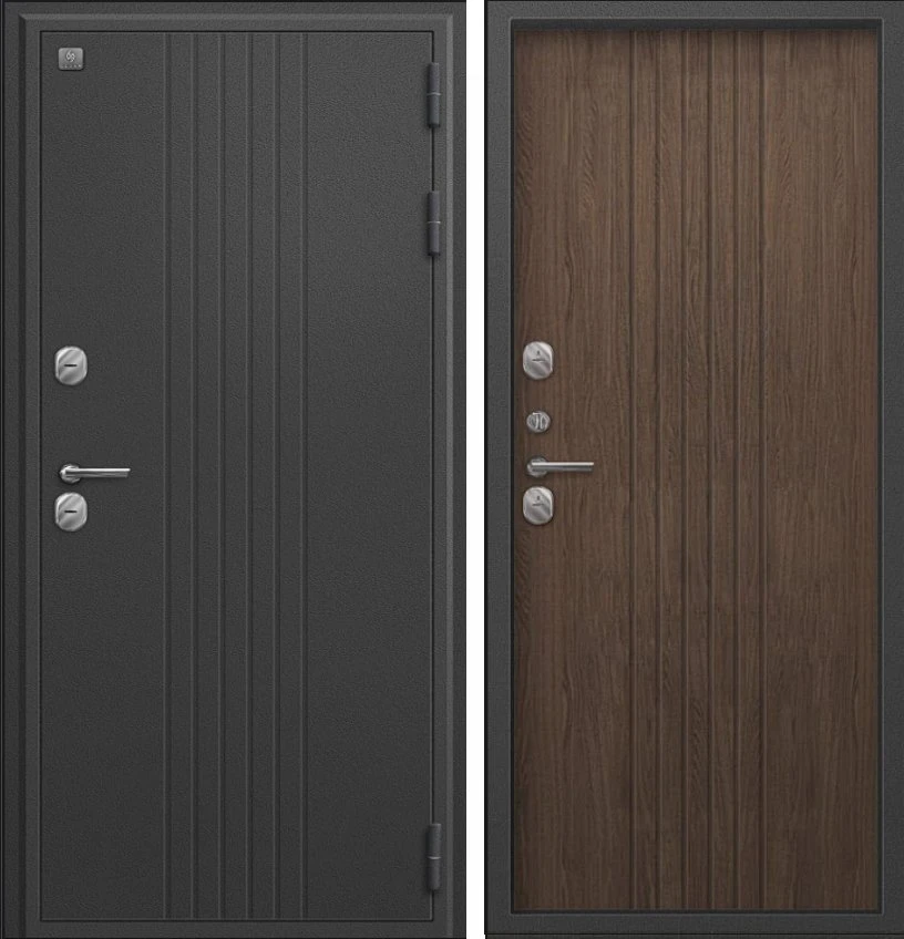 Надежная входная Дверь Термо-90 графит букле - миндаль рифлёный премиум класса по цене 37 863 руб. Большая толщина стали защитит от проникновения в ваш дом, квартиру или коттедж. Используется очень качественная фурнитура: замки, цилиндры, ручки, защелки. Покрытие и отделка двери изготовлено под внимательным контролем производителя. Дверь имеет долгий срок службы и гарантию.